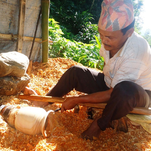 दारको रूखबाट ठेकी बनाउन व्यस्त इलाम आमचोक–५ शनिश्चरेका खडानन्द बराइली । तस्विर : गोविन्द लामिछाने, रासस \"theki_\"
