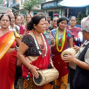 बागलुङमा शुक्रबार आयोजित सांस्कृतिक कार्यक्रममा मगर समुदायका बासिन्दाले कीर्तन प्रस्तुत गर्दै । तस्बिर - रामबहादुर थापा, रासस \"magar\"