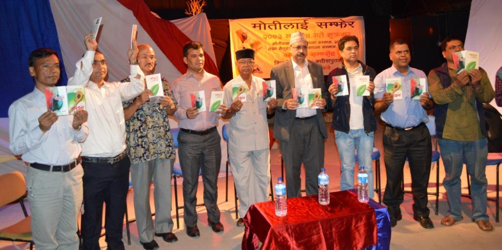 काठमाडौ, २६ भदौ । गजलकार युवाकवि मोतीराम भट्टको १५१ औँ जन्मजयन्तीको अवसरमा आज (शुक्रबार) राजधानीमा ‘मोतीलाई सम्झेर’ कार्यक्रम सम्पन्न भएको छ । \"vanu\"अन्तर्राष्ट्रिय नेपाली गजल मञ्चको आयोजनामा भएको सो कार्यक्रममा गजलकार बूँद रानालाई मोतीराम गजल साधना सम्मान, २०७३ र युवासंगीतकार सन्तोष श्रेष्ठलाई सेतुराम संगीत साधना सम्मान, २०७३ प्रदान गरियो । सम्मान राशि पाँच/पाँच हजार रुपैयाँ र प्रमाणपत्र रहेको थियो । सोही कार्यक्रममा युवागजलकार लोकेन्द्र बञ्जाराको दोस्रो गजलकृति ‘जैतुन’ तथा गजलकार डा. हरिकुमार श्रेष्ठका दुई गजलकृति ‘आँकुरा’ र ‘तरंग’को विमोचन पनि गरियो । नेपाल प्रज्ञाप्रतिष्ठानका उपकुलपति डा. विष्णुविभू घिमिरेको प्रमुख आतिथ्यमा सम्पन्न कार्यक्रममा गजलकारहरू डा. विजय सुब्बा, रवि प्राञ्जललगायतले गजलवाचन गरेका थिए । विमोचित कृतिमाथि सुरेश सुवेदी र शैलेन्द्र अधिकारीले समीक्षा गरेका थिए । बञ्जाराको कृतिमाथि बोल्दै सुरेश सुवेदीले लोकेन्द्र बञ्जाराका गजलले समग्र वैश्विक परिवेशलाई उजागर गरेका बताए । देशको वर्तमान विसंगत अवस्था र राजनीतिको भ्रष्टीकरणबारे पनि उनको असहमति प्रकट भएको पनि सुवेदीले उल्लेख गरे । यसरी नै डा. श्रेष्ठको गजलकृति तरंगमाथि समीक्षा गर्दै शैलेन्द्र अधिकारीले डा. श्रेष्ठका गजलमा समसामयिक राजनीति, प्रेम र समाज प्रमुख विषय भएर आएका बताए । अधिकारीले श्रेष्ठका गजलले परिष्कारको अपेक्षा गरेको पनि उल्लेख गरे । अन्तर्राष्ट्रिय नेपाली गजल मञ्चका अध्यक्ष घनेन्द्र ओझाले सञ्चालन गरेको कार्यक्रममा अन्तर्राष्ट्रिय नेपाली गजल मञ्च नेपाल च्याप्टरका संयोजक भरत पौडेलको सभापतित्वमा सम्पन्न भएको थियो ।
