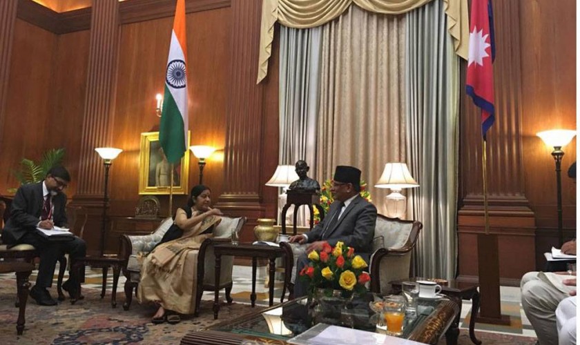 प्रधानमन्त्री प्रचण्ड र भारतीय विदेशमन्त्री स्वराजबीच भेटवार्ता