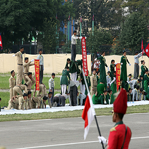 नेपालको संविधान घोषणा भएको प्रथम वार्षिकोत्सवका अवसरमा सैनिक मञ्च टुँडिखेलमा सोमबार स्काउट कला कौशल प्रदर्शन गर्दै । तस्बिर : रोशन सापकोटा, रासस [caption id=\"attachment_93265\" align=\"alignleft\" width=\"700\"]\":sfp6 :sfp6 snf– k|bz{g
