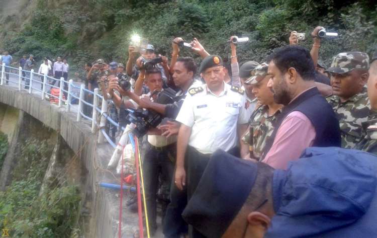 \"news-mantri-750\"काठमाडाै, ११ असाेज । उपप्रधान तथा गृहमन्त्री विमलेन्द्र निधिले दुर्घटनामा बेपत्ता भएका पूर्वगृहमन्त्री लगायतको खोजीका लागि आवश्यक परेमा मेसीन प्रयोग गरेर खोज्न निर्देशन दिएका छन् । पूर्वगृहमन्त्री माधवप्रसाद घिमिरे चढेको गाडी दुर्घटनामा परेको त्रिशूलीको घोप्टेभीरमा निरीक्षणमा आएका गृहमन्त्री निधिले घटना अन्त्यन्तै दुस्खदायी भन्दै सरकारले खोजीमा कुनै कसर बाँकी नराख्ने बताए । घटनास्थलको निरीक्षणपछि गृहमन्त्री निधिले सुरक्षा निकायलाई खोजीमा अहोरात्र खट्न भन्दै त्यस्तो निर्देशन दिएका हुन् । पूर्वगृहमन्त्री दुर्घटना परे सरकार गम्भीर रहेकाले आफू निरीक्षण, अवलोकनमा आएको मन्त्री निधिको भनाइ छ । गृहमन्त्रीको निरिक्षण टोलीमा गृहसचिव लोकदर्शन रेग्मी, गृहमन्त्रालयअन्तर्गत शान्ति सुरक्षा महाशाखा प्रमुख बालकृष्ण पन्थी, नेपाल प्रहरीका महानिरीक्षक उपेन्द्रकान्त अर्याल, सशस्त्र प्रहरीका आईजीपी दुर्जकुमार राई र राष्ट्रिय अनुसन्धान विभागका प्रमुख दिलीपराज रेग्मी पनि छन् । खोजी कार्यमा वाटर क्यामरा, पानीभित्र खोज्ने मेसिन लगायत उच्चस्तरीय प्रविधि प्रयोग गरिएको उल्लेख गर्दै गृहमन्त्री निधिले अपुग भए विदेशबाट मगाउन सरकार तयार रहेको बताए । उनले विशेषज्ञ प्राविधिक टोलीलाई खोजीमा दिनरात खटिएको भन्दै आवश्यक सहयोग गर्न सरकार जुनसुकै समयमा तयारको बताए । घटनास्थल चितवनको घोप्टेभीर अवलोकनपछि गृहमन्त्रीको टोली भारतसँग सीमा जोडिएको नवलपरासीको त्रिवेणीतर्फ गएको छ । खोजीमा नेपाल प्रहरी, सशस्त्र प्रहरी, नेपाली सेनाका गरी पाँच सयभन्दा बढी खटिएका छन् । गृहमन्त्रीको टोली भरतपुरमा रहेको जुनियर प्रहरी अधिकृत शिक्षालयको अवलोकनपछि मंगलबार नै काठमाडौं फर्कनेछ । टोलीसँगै घाइते चालक विष्णु राईलाई काठमाडौं ल्याइनेछ । मुस्ताङमा बाबुको सोह्रश्राद्ध गरेर फर्कंदै गरेका घिमिरे र उनको परिवार चढेको गाडी आइतबार त्रिशूलीमा खसेको थियो । दुर्घटनामा आमासहित तीन जनाको मृत्यु भएको थियो ।