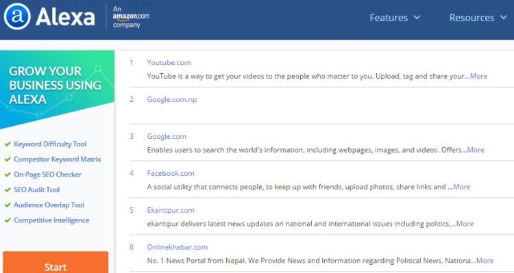 \"ekantipur-ranking\" काठमाडौं, ११ असोज । नेपाली अनलाइन मिडियाको सर्वश्रेष्ठ अनलाइनखबरलाई इकान्तिपुरले उछिनेको छ । नम्बर एक अनलाइन समाचार पोर्टल दाबी गर्दै आएको अनलाइनखबर अलेक्सा र्याङकिङमा इकान्तिपुर भन्दा पछाडि परेको छ । इकान्तिपुर डट कम बरियताको पाँचौं स्थानमा आइपुगेको छ भने अनलाइनखबर छैटौं स्थानमा पुगेको छ । नेपाली अनलाइन न्यूजपोर्टलमा अहिलेसम्म अनलाइनखबर सबैभन्दा अगाडि रहँदै आएको थियो । सबैभन्दा बढी हेरिन साइटमा फेसबुक रहँदै आएकोमा फेसबुक पनि यसपाली पछाडि परेको छ । बरियतामा यूट्युब पहिलो नम्बरमा छ भने गुगल दोस्रो र तेस्रोमा रहेको छ भने फेसबुक चौंथो स्थानमा पुगेको छ । भिजिटरकाे अाधारमा अलेक्साले वेबसाइटकाे बरियता छुट्याउँछ ।