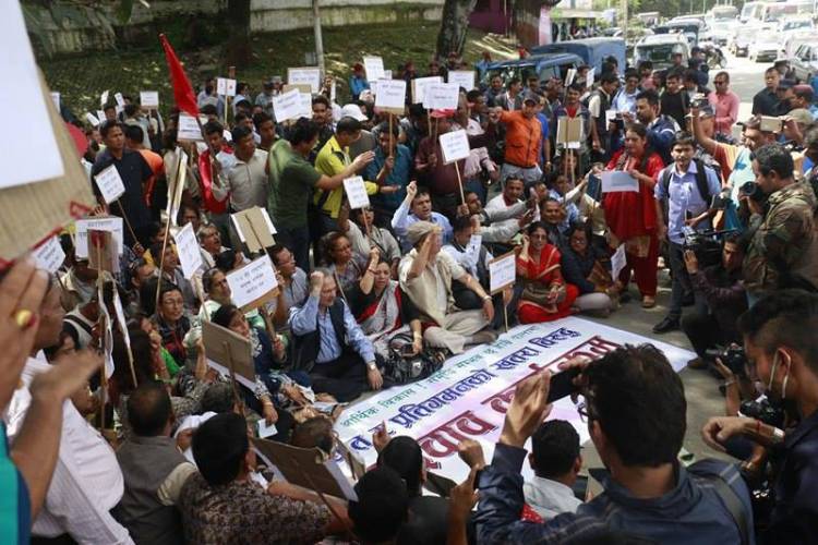 \"naya-shakti-protest-at-bhadrakali\" काठमाडौं, १४ असोज । तत्कालिन माओवादी नेता डा.बाबुराम भट्टराई प्रधानमन्त्री भएका बेला भारतसँग विप्पा सम्झौता गरिएको भन्दै आफ्नै पार्टीका नेता मोहन वैद्य ‘किरण’ सडकमा उत्रिएका थिए । भट्टराईले राष्ट्रघाती सम्झौता गरेको भन्दै आफ्नै पार्टीका नेता वैद्यले सडकमा नै उत्रिएर आफ्नै सरकारविरुद्ध सडक आन्दोलन चर्काएका थिए । भट्टराईले गरेका विप्पा लगायतका सम्झौतालाई कार्यान्वयनमा ल्याउने गरी प्रधानमन्त्री पुष्पकमल दाहाल ‘प्रचण्ड’ले हालै दिल्ली भ्रमणमा सम्झौता गरेर आएका छन् । दिल्ली भ्रमणका क्रममा प्रधानमन्त्री प्रचण्ड र प्रचण्डका समकक्षी नरेन्द्र मोदीबाट जारी गरिएको २५ बुँदे संयुक्त वक्तब्यमा पनि सो कुरा उल्लेख छ । तिनै भट्टराईले अहिले राष्ट्रघात र प्रतिगमनको खतरा देखेका छन् । उनी अहिले नयाँ शक्ति पार्टीको ब्यानरमा वर्तमान सरकारलाई राष्ट्रघाती भन्दै सडकमा उत्रिन थालेका छन् । ‘राष्ट्रघात र प्रतिगमनको खतराविरुद्ध जनदबाब कार्यक्रम’ भन्दै भट्टराईले शुक्रबार काठमाडौंको भद्रकाली सडकमा कार्यकर्तासँगै धर्ना कसे । नयाँशक्तिका संयोजक रहेका भट्टराईसँगै उनका पार्टी दुई जना सहसंयोजक पनि मुठ्ठी कसेर सडकमा नारा लगाइरहेका थिए । प्रमुख राजनीतिक दलहरुले सत्ता स्वार्थलाई ध्यान दिँँदा संविधान जारी भएपछि प्राप्त भएका उपलब्धि पनि गुम्ने खतरा बढेको भट्टराईको आशंका छ । प्राप्त अधिकार पनि गुम्ने खतरा रहेको भन्दै नयाँ शक्तिले सचेत रहने अपिल समेत गरेको छ । भट्टरार्इ प्रधानमन्त्री भएकै बेला पहिलाे संविधानसभा संविधान जारी नगरी विघटन भएकाे थियाे । धर्नासँगै शुक्रबार नै नयाँ शक्ति पार्टीले सरकारसमक्ष पाँच बुँदे मागसमेत प्रस्तुत गरेको छ । प्रधानमन्त्री प्रचण्डको भारत भ्रमणका क्रममा जारी भएको २५ बुँदे संयुक्त वक्तब्यले नेपाललाई भुटानीकरणको स्थितिमा पु¥याएको नयाँ शक्तिको आरोप छ । प्रधानमन्त्री प्रचण्डले नेपालको वैदेशिक नीति भारतीय स्वार्थसँग जोडेर असंलग्न परराष्ट्र नीतिलाई समाप्त गर्न खोजेकोसमेत नयाँशक्तिको आरोप छ । २५ बुँदे वक्तब्यको ११ नम्बर बुँदाले विदेश नीति भारतसँग जोडेर नेपालको भुटानीकरण गर्ने काम गरेको नयाँ शक्तिको आरोप छ ।