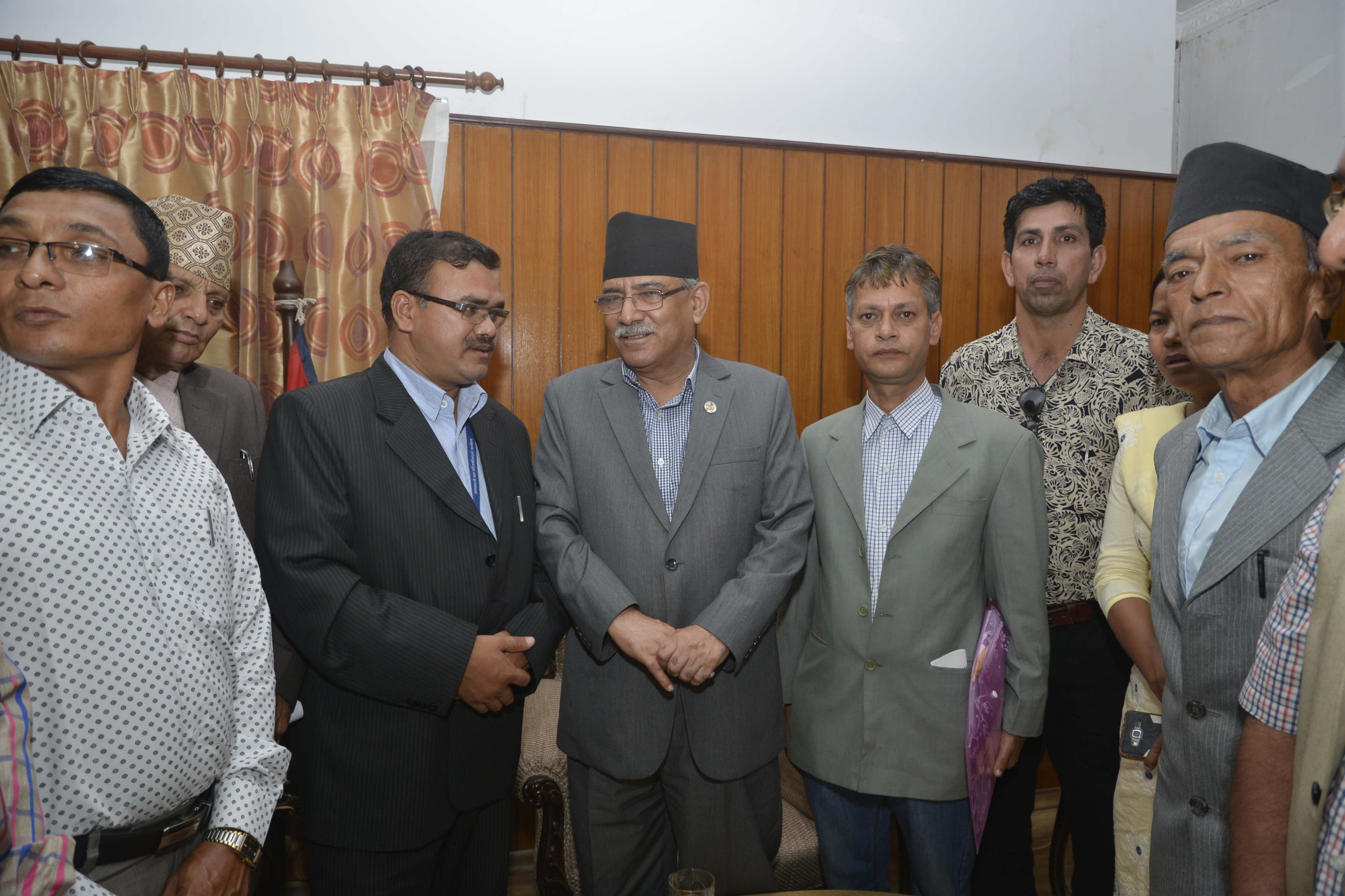 \"_dsc2283\"असोज १४, काठमाडौं । प्रधानमन्त्री पुष्पकमल दाहाल ‘प्रचण्ड’ले राष्ट्रको विकास, समृद्धि र प्रगतिका बाधकका रुपमा कसिएका गाँठा फुकाउने संकल्प सहित आफू प्रधानमन्त्रीको जिम्मेवारीमा आएको बताएका छन् । शुक्रबार पूर्वाञ्चल विश्विद्यालयसँग सरोकार राख्ने बुद्धिजीवीहरुसँगको भेटमा प्रधानमन्त्रीले भने, ‘अघिल्लो कार्यकालमा चाहेर पनि समस्याका धेरै गाँठा फुकाउन सकिएन । मैले पहल गरेर हुन्छ भने यसपालि धेरै गाँठा फुकाउने चाहना र संकल्पसहित आएको छु । देशको विकास, समृद्धि र प्रगतिका लागि समस्या धेरै गाँठा फुकाउने संकल्प छ, हेरौं कति फुक्छन् ।’ प्रधानमन्त्रीले पूर्वाञ्चल विश्वविद्यालय नेपालको पुरानो र स्थापित विश्वविद्यालय भएको स्मरण गर्दै प्राज्ञिक र प्रशासनिक नेतृत्वको सवलता र इमान्दारिताले मात्रै प्राज्ञिक क्षेत्रको विकास हुने बताए । भेटमा प्रधानमन्त्रीले सबै प्रदेशमा सरकारी प्रयासबाटै मेडिकल कलेज बनाउने सरकारको संकल्प रहेको जानकारी दिए । भेटमा बुद्धिजीवीहरुको सर्वदलीय समूहले पूर्वाञ्चल विश्वविद्यालयमा मेडिकल कलेज र शिक्षण अस्पताल स्थापना गर्न, कलेजका केन्द्रीय प्रशासनिक निकायहरु मोरङको गुडगाउँमा स्थानान्तरणको व्यवस्था गर्न, पूर्वाञ्चल विश्वविद्यालयलाई पूर्ण सरकारी लगानीमा सञ्चालन गर्न र विश्वविद्यालयको आय–व्यय महालेखा नियन्त्रकको कार्यालयबाटै लेखा परीक्षण गर्ने व्यवस्था गर्न प्रधानमन्त्रीको ध्यानाकर्षण गराएको थियो ।