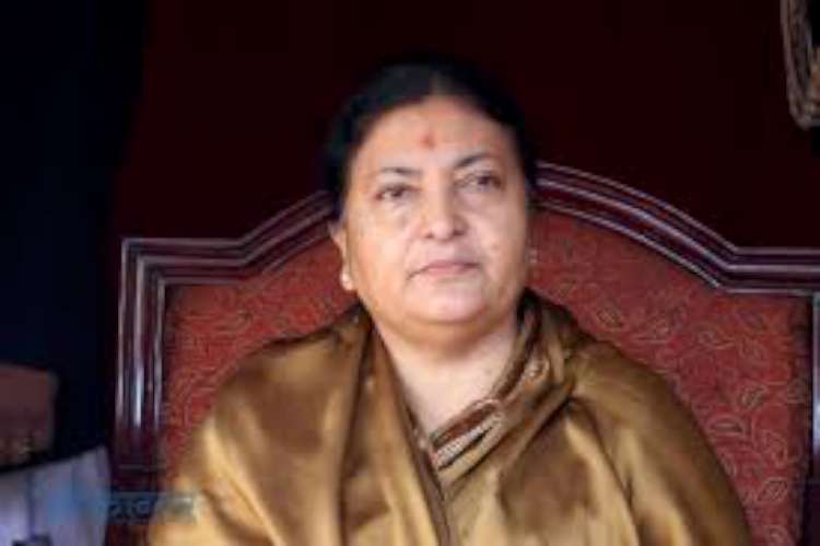 \"images-750\" काठमाडौँ, २५ असोज । राष्ट्रपति विद्यादेवी भण्डारीले राष्ट्रपति भवन शीतल निवासमा आज बिहान ०८ः४५ बजेको शुभसाइतमा हनुमानढोका दसैँघरका मूल पुजारी देवराज अर्यालबाट विजयादशमीको टीका लगाए । राष्ट्रपतिलाई उहाँले शास्त्रोक्त विधिपूर्वक अभिषेक गर्दै जमरा र नवदुर्गाको प्रसाद प्रदान गर्नुभएको थियो । सो अवसरमा राष्ट्रपतिका पुरोहित पण्डित खेमचन्द्र ढकाल पनि उपस्थित थिए । सोही अवसरमा राष्ट्रपति भण्डारीलाई उहाँका काका काकी खगेन्द्र पाण्डे र ज्ञानु पाण्डे तथा जयन्त पाण्डे र सावित्री पाण्डेले पनि टीका लगाइदिए। राष्ट्रपति भण्डारीले पनि छोरी उषाकिरणलाई टीका लगादिए। साथै, सोही अवसरमा राष्ट्रपतिले पनि आफ्ना परिवारका अन्य सदस्य तथा आफन्तहरुलाई टीका लगाइदिएकी थिइन । राष्ट्रपतिले सर्वसाधारणलाई दसैँको टीका आज अपरान्ह २ बजेदेखि लगाइदिने कार्यक्रम रहेको छ । रासस