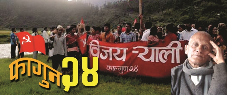 \"mohanbikram-film-fagun24\" काठमाडौं, २ कात्तिक । नेपाल कम्युनिष्ट पार्टी (मसाल)का महामन्त्री मोहनविक्रम सिंहको किसान आन्दोलनबारेमा सिनेमा निर्माण शुरु गरिएको छ । २०१० सालमा प्युठानमा थालिएको किसान आन्दोलनबारे सिंहले लेखेको पुस्तक ‘फाल्गुन २४’ माथि छायांकन थालिएको हो । किसान आन्दोलनमा आफूले खेलेको भूमिकाबारेमा सिंहले उक्त पुस्तक लेखेका हुन् । प्युठानको किसान आन्दोलन फाल्गुन २४ गते सफल भएको कारण सिनेमाको नाम पनि ‘फाल्गुन २४’ नै राखिएको छ । किसान आन्दोलनको इतिहासबारे उजागर गरिएको उक्त कृतिमाथि तयार पारिएको सिनेमा गरिब किसान वर्गका लागि प्रेरणा बन्ने अपेक्षा निर्माणकर्मीको छ । निर्देशक हेमराज आश्रमका अनुसार तत्कालीन अवस्थामा रातामाटामा सञ्चालन भएको शिविर, नारीकोटमा सञ्चालन अस्थायी शिविर र आन्दोलनको स्वरुपलाई दर्शाउने गरी फिल्म छायाङ्कन गरिएको छ । फिल्ममा तत्कालीन किसान आन्दोलनका नेतृत्वकर्ता सिंह श्यामको भूमिकामा, उनका समकालीन खगुलाल गुरुङ्ग हर्केको भूमिकामा रहेका छन् । रक्तिम साँस्कृतिक अभियान महानगर समितिले छायाङ्कन गरेको सिनेमामा रक्तिम साँस्कृतिक परिवारका उपाध्यक्ष नारायण योगी, रक्तिम कलाकार रेम राना, टीका संगम, मानबहादुर भण्डारी, जीवन शाही, प्रतिभा शर्मा, सुप्रभा थापा, मधुर बस्नेत लगायतले अभिनय गरेका छन् । प्युठानको नारीकोटका किसानहरुबाट साहुहरुले गरेको दमन विरुद्ध सिंहकै अगुवाइमा संघर्ष थालिएको थियो । २०२२ सालतिर जेलमा रहँदा सिंहले किसान आन्दोलनबारेमा नाटक तयार पारेका थिए ।
