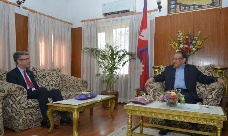 \"_dsc9800-750\"काठमाडौंं, ५ कात्तिक । प्रधानमन्त्री पुष्पकमल दाहालसित नेपालका लागि बेलायती राजदूत रिचार्ड मोरिसले शिष्टाचार भेटघाट गरेका छन । प्रधानमन्त्री निवास बालुवाटारमा भएको सो भेटघाटमा नेपाल र बेलायतबीचको आपसी हितका बारेमा कुराकानी भएको प्रधानमन्त्री दाहालको निजी सचिवालयले जनाएको छ ।