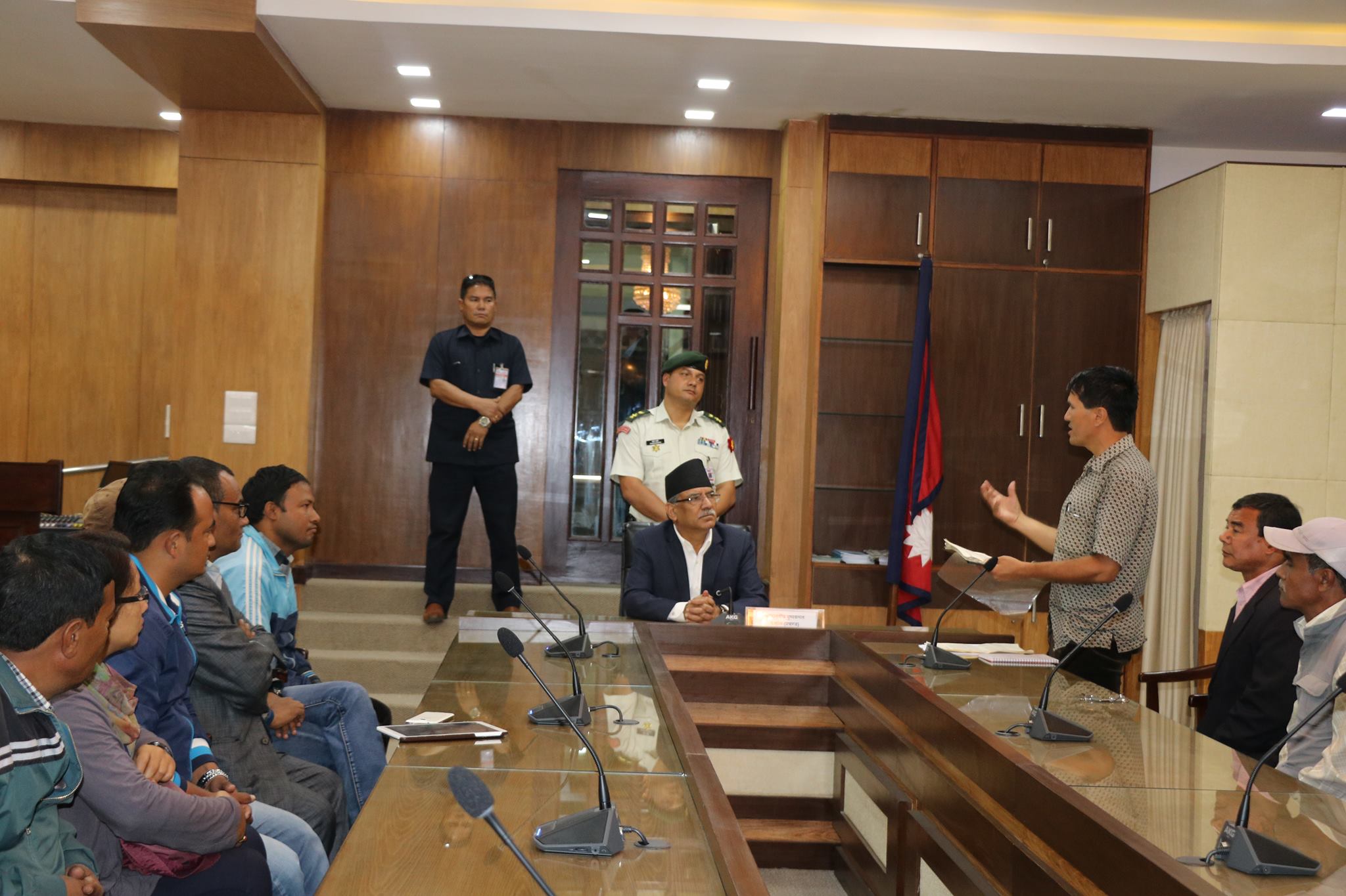 \"vet\"कार्तिक ७, काठमाडौं । सगरमाथा आरोही कृष्ण केसी र पूर्वसभासद् दीलिप महर्जन नेतृत्वको टोलीले प्रधानमन्त्री पुष्पकमल दाहाल ‘प्रचण्ड’सँग भेट गरी काठमाडौं, ललितपुर र भक्तपुरको बृहत र एकीकृत शहरी विकास गरी काठमाडौं सेटलाइट मेघासिटी निर्माण गर्न आग्रह गरेको छ । टोलीले आइतबार प्रधानमन्त्री तथा मन्त्रीपरिषद्को कार्यालय सिंहदरबारमा भेट गरी बृहत र एकीकृत सेटलाइट मेघासिटीको प्रस्ताव अघि सारेको हो । प्रस्तावमा काठमाडौं, ललितपुर र भक्तपुरको एकीकृत विकास र सेटलाइट मेघासिटीका रुपमा विकास गर्न, महाभारत पर्वतमालामा पर्यटन चक्रपथ र त्यसको बेसीमा पर्यटन नगर विकास गर्न, भूकम्पको पूनर्निर्माण र नवनिर्माणका लागि उपत्यकाबाट महाअभियान घोषणा गर्न, राजधानी विकास बोर्डको गठन गर्न, विश्व रिसर्च सेन्टर र पर्यटन विश्वविद्यालय स्थापना गर्न, राष्ट्रव्यापी होमस्टे निर्माणको थालनी गर्न र यी सबै प्रयोजनका लागि आवश्यक बजेटको व्यवस्था गर्न प्रधानमन्त्रीको ध्यानाकर्षण गराइएको छ । भेटमा प्रधानमन्त्री पुष्पकमल दाहाल ‘प्रचण्ड’ले काठमाडौं, ललितपुर र भक्तपुरको एकीकृत र व्यवस्थित विकास आवश्यक रहेकोमा जोड दिँदै भने, ‘राजधानीको व्यवस्थित विकासका लागि काठमाडौं, ललितपुर र भक्तपुरको बृहत योजना र एकीकृत विकास आवश्यक छ । यसबारे मैले पहिलेदेखि नै चासो राख्दै आएको छु । तपाईहरुले प्रस्तुत गर्नुभएको अवधारणा मौलिक र नयाँ पनि छ । सबै पक्षसँग बृहत अन्तरक्रिया गरेर अगाडि बढ्नुस्, सरकार सकारात्मक सहयोगका लागि सधैं तयार छ ।’